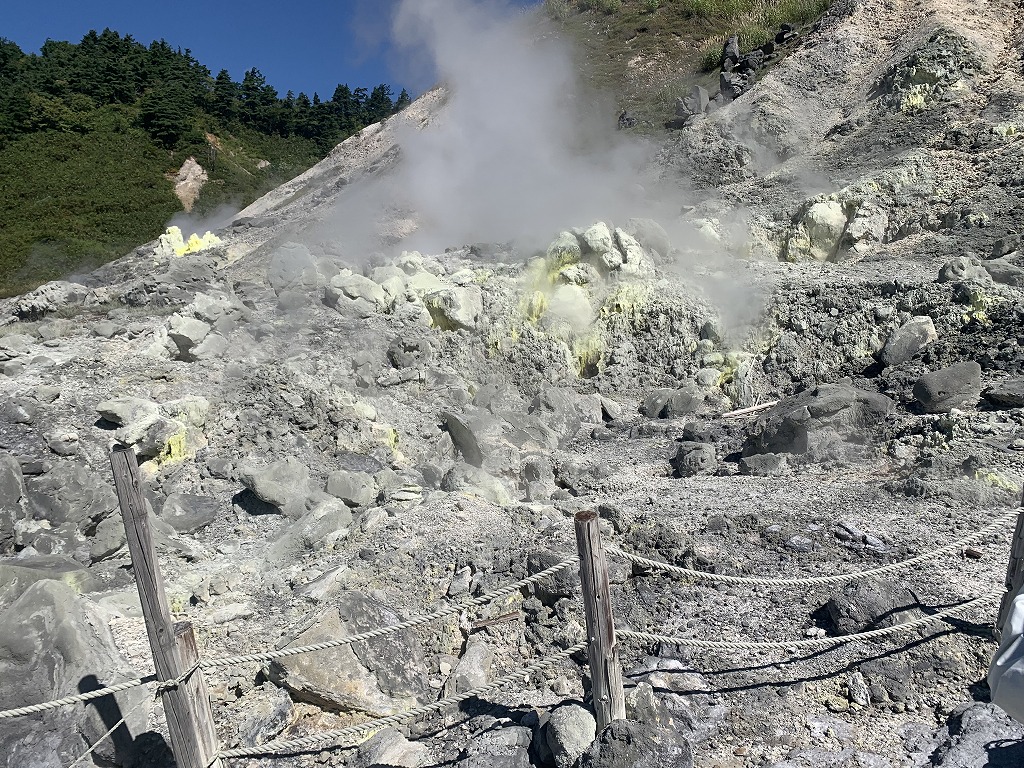 2日目は朝食後宿の裏手の自然観察路を回る。ここでは泥火山やマッドポットがありぷくぷく泥が湧いている。大沼湯も見たことのない景観だった。